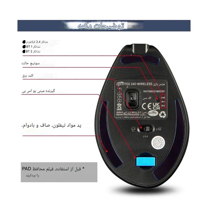 موس گیمینگ عمودی بی سیم شارژی zelotes مدل f-35b